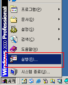 (1) 작업표시줄의 시작 → 실행을 선택합니다. |
