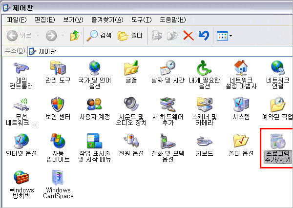 (1) 시작 > 제어판 > 프로그램 추가/제거를 클릭합니다. |