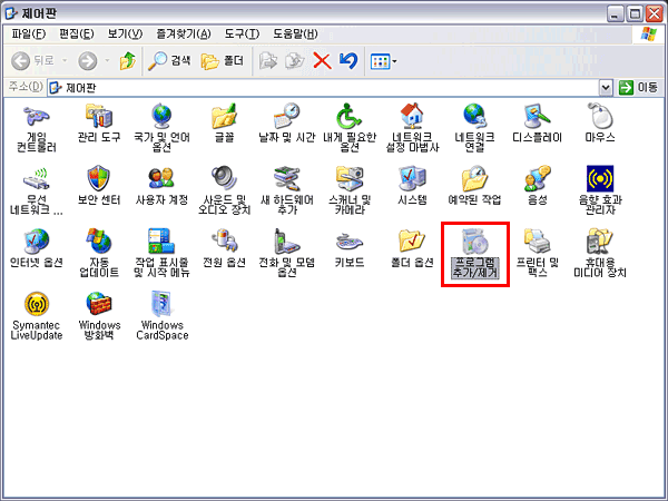 > 제어판 > 프로그램 추가/제거를 클릭