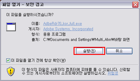 학습도구다운로드를 통하여 필요한 프로그램을 설치하는데 이 중 pdf파일을 볼 수 있는 Adobe