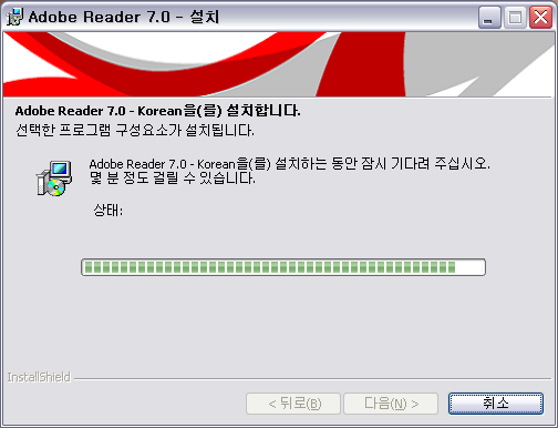Adobe Acrobat 7 설치가 진행중입니다. 완료될때까지 컴퓨터의 사용은