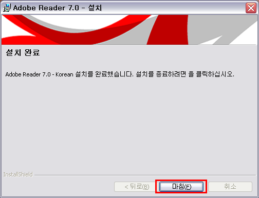 7 설치가 완료 되었습니다. 마침(F)를 클릭하여 설치를 종료합니다. 현재 회원님 컴퓨터에 pdf파일을 보기위한