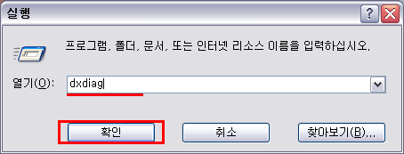 (3) 시작 > 실행 클릭 후 dxdiag를 입력한 후 확인을 클릭
